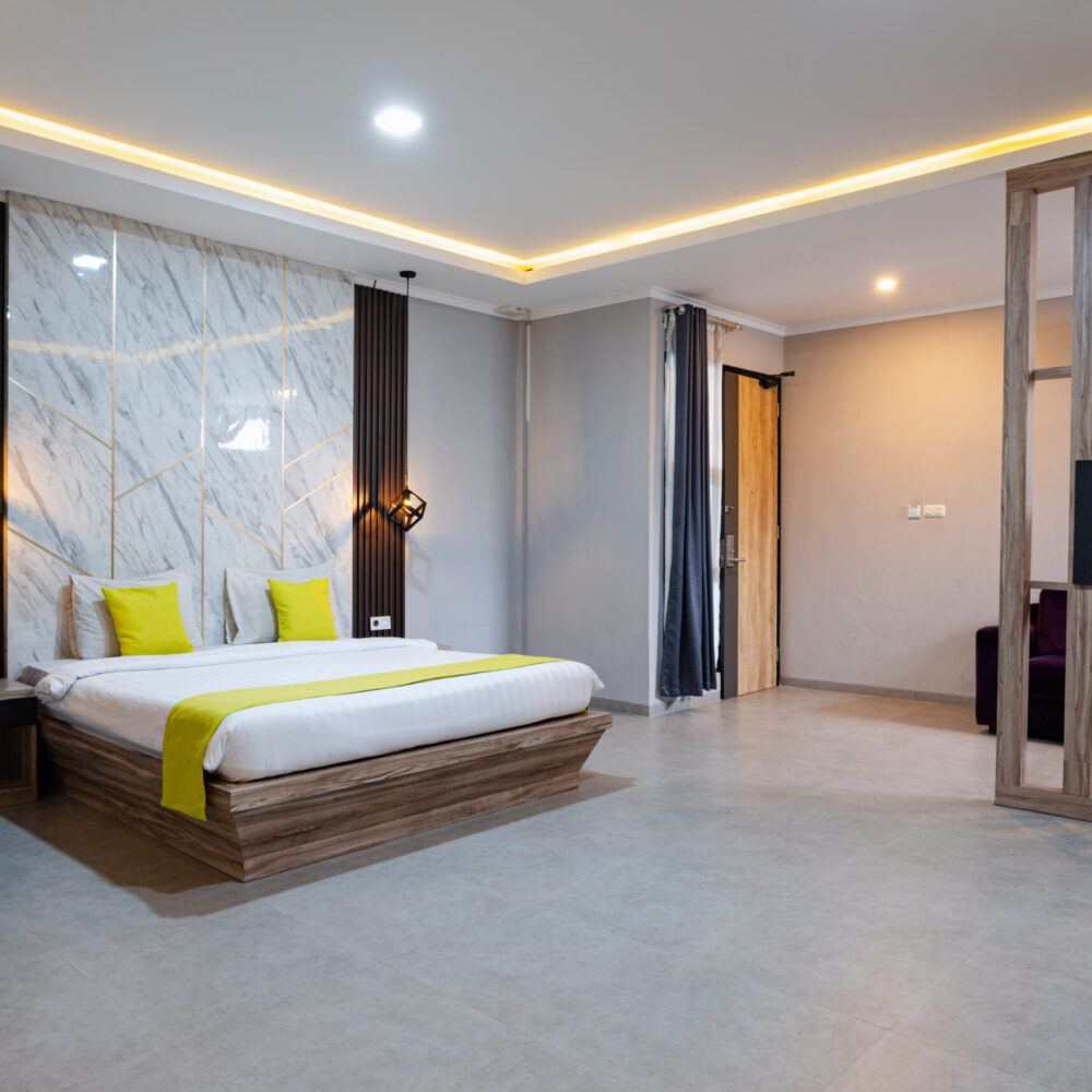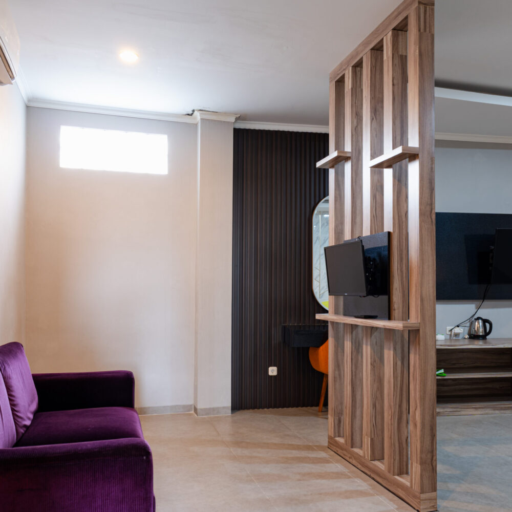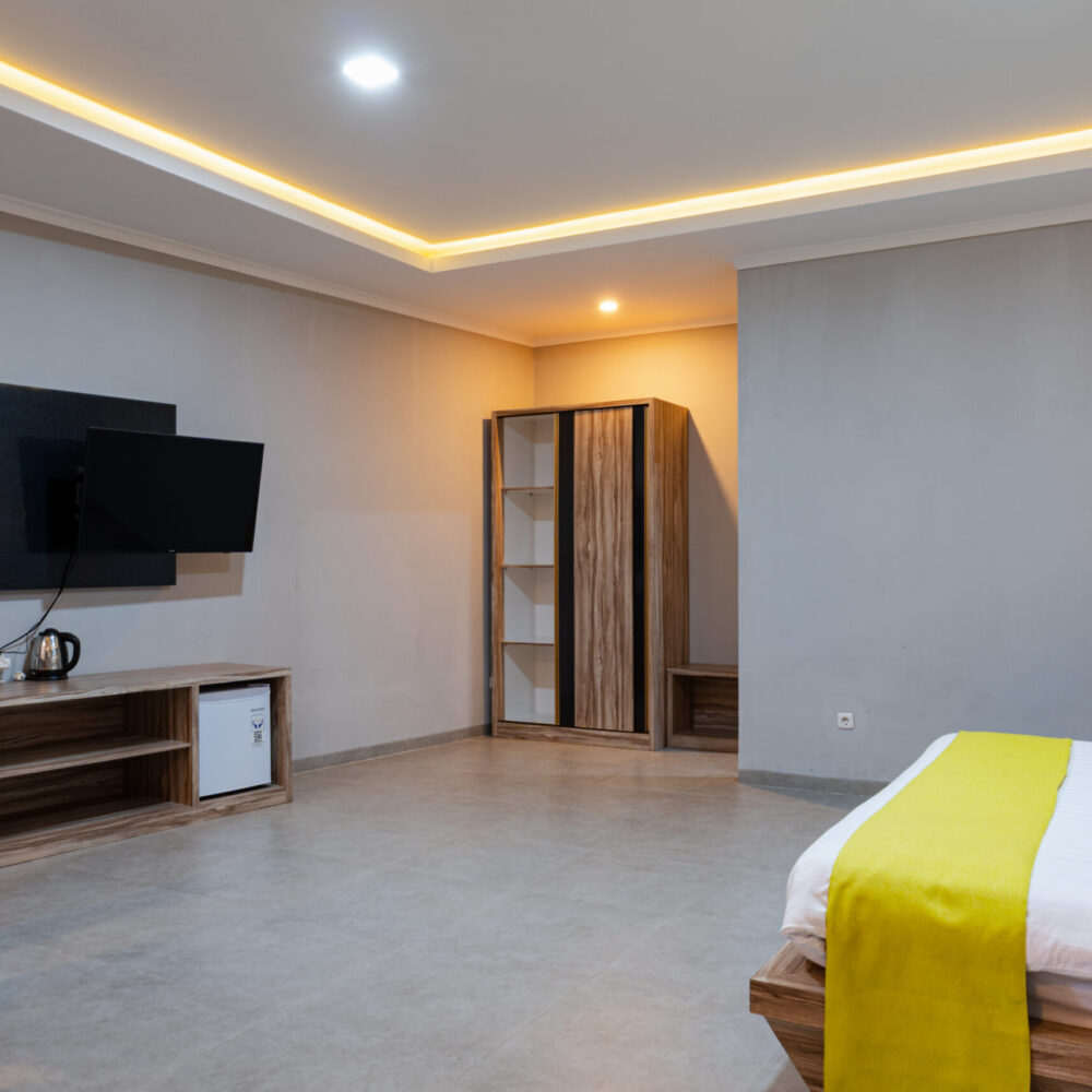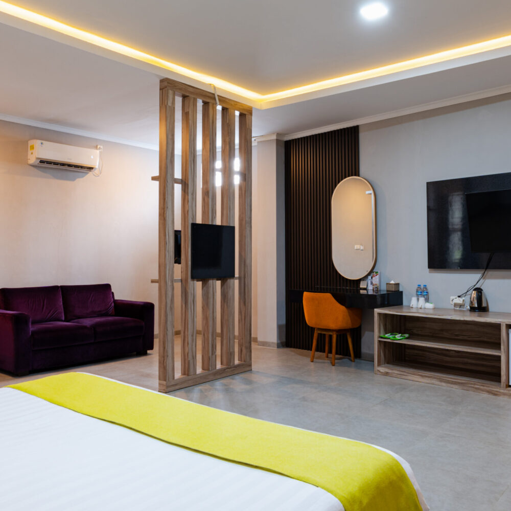 Suite Room adalah pilihan terbaik untuk Anda yang mencari kemewahan dan eksklusivitas. Dengan ukuran 42 m², kamar ini dilengkapi tempat tidur Double Bed, sarapan untuk dua orang, serta fasilitas premium seperti kulkas, pengering rambut, dan alat pembuat kopi/teh. Dirancang untuk kenyamanan maksimal, tipe kamar ini hanya tersedia satu unit dan merupakan non-smoking room. Ideal untuk pasangan atau tamu istimewa yang menginginkan pengalaman menginap yang mewah dan pribadi.